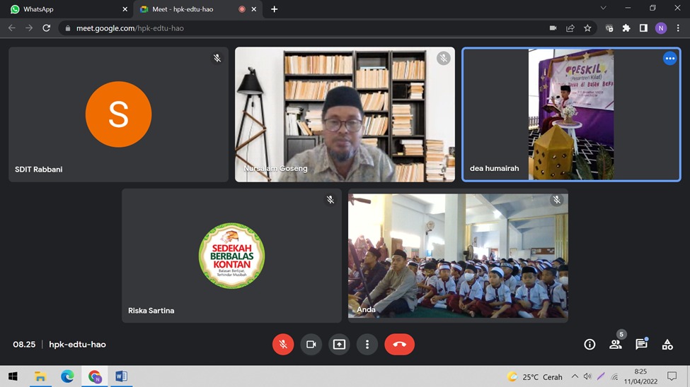 Selanjutnya kegiatan ini disambut dan dibuka dengan resmi oleh kepala dinas pendidikan bapak Drs. Nursalam, M.Pd melalui media virtual, Google Meet.
